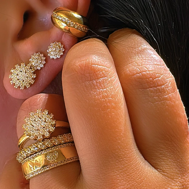 Aliança cravejada com banho de Ouro 18K