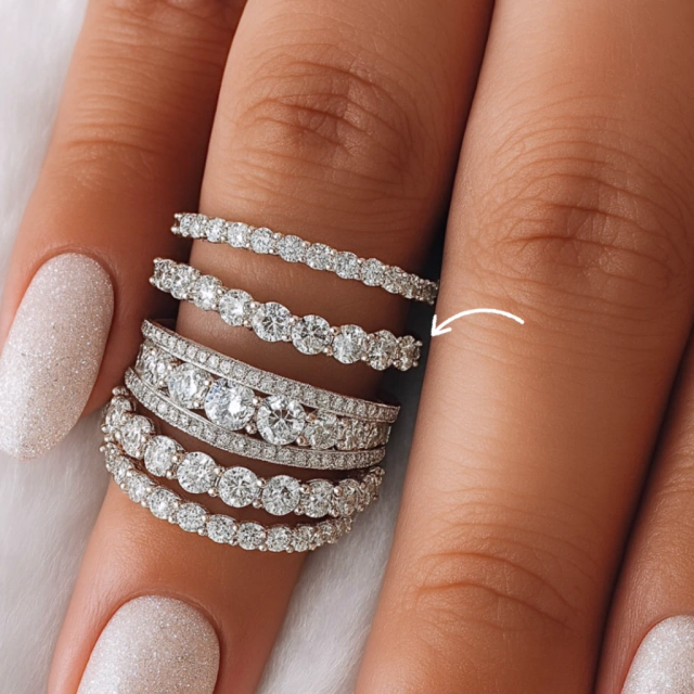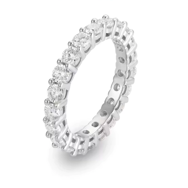 Aliança inteira Moissanite em Prata 925 com banho de Ródio