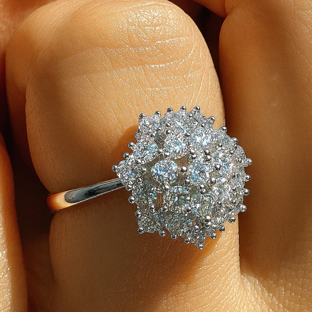 Anel chuveiro  moissanites Prata 925 com banho de ródio