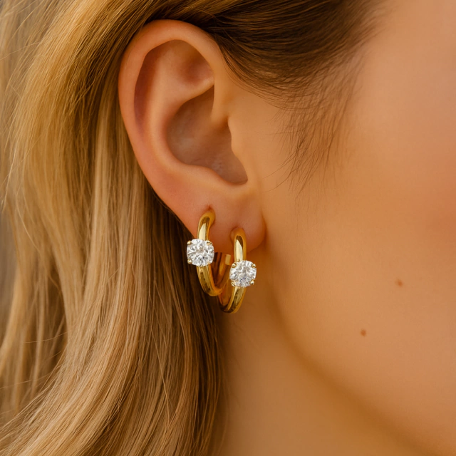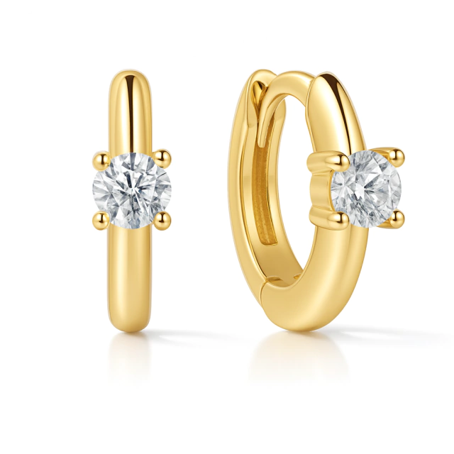 Brinco argola robusta com ponto de luz Moissanite em Prata 925
