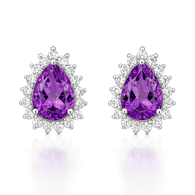 Pedra central ametista natural e cravação princess ao redor de Moissanites em Prata 925
