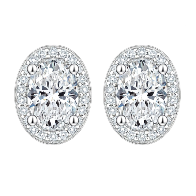 Brinco pedra central oval cravejado ao redor de Moissanites redondas
