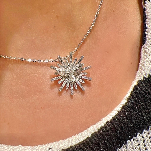 Colar Divino Espírito cravação pavê de Moissanites em Prata 925