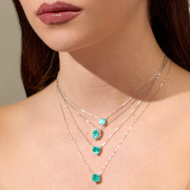 Colar Oval Esmeralda com cravação princess de Moissanite em Prata 925